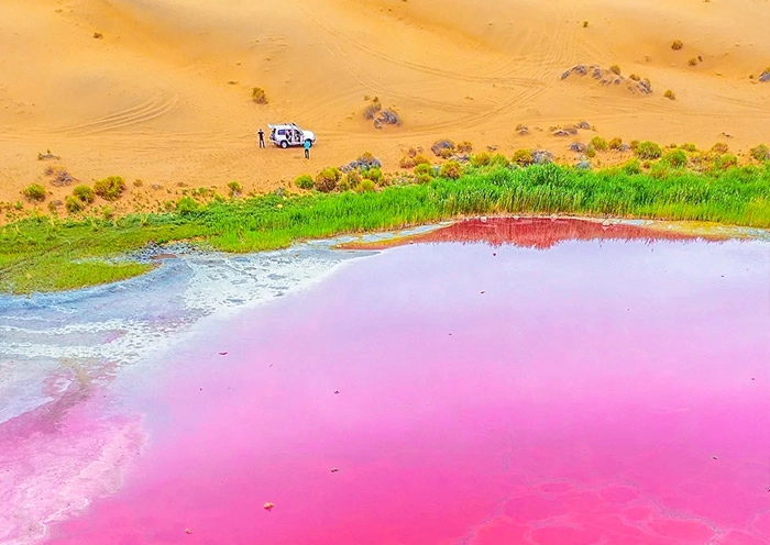 Highlight 8: Marvel at the stunning array of lakes scattered across the Badain Jaran Desert, where each lake reflects its own unique colors – ranging from deep blues to vibrant redscreating a surreal, picturesque landscape unlike anywhere else on Earth.