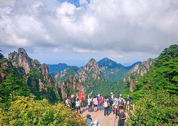 To maximize your time and energy and experience the mountain’s most mesmerizing sceneries on the top, a sightseeing bus will transfer you directly from the foot of the back mountain to Yungu Temple. From here, you’ll board the cableway to White Goose Ridge Station (8 mins). As you ascend, give you breathtaking aerial views of the forests below—a canvas of endless green, with granite peaks and twisted pines veiled in mist. Upon arrival, you’ll notice the air is cooler and crisper. Now begins your trek to the poetic Begin-to-Believe Peak. Huangshan is famous for its ancient and oddly shaped pine trees. En route, you’ll admire several like Black Tiger Pine, and Harp Pine, each with its unique shape and character. When you reach Begin-to-Believe Peak, you’ll understand how it got its name. The stunning vistas, which include a mixture of cliffs, valleys, and uniquely shaped rocks, will make you begin to believe in the mystical aura that Huangshan is famous for. After soaking in the views at Begin-to-Believe Peak, you will trek for about 40 minutes to your mountaintop hotel for a break.