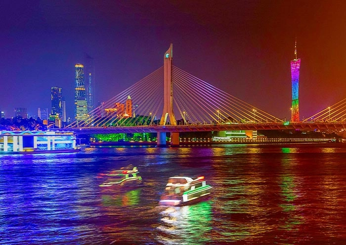 Dive into Guangzhou’s enchanting night atmosphere with a memorable cruise along the Pearl River. A night cruise (from 19:00 to 22:00) provides an unmatched vantage point to admire Guangzhou’s skyline. Drift past iconic Guangzhou landmarks such as the Canton Tower, which shines brilliantly against the night sky, and the beautifully illuminated bridges that stretch across the river.