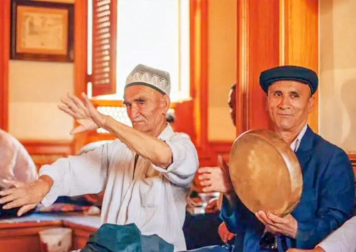 Furthermore, Kashgar Old City is a hub for numerous cultural and religious activities as well as a place for residents’ daily lives and social interactions. One of the most notable landmarks is Id Kah Mosque(艾提尕尔清真寺), one of the largest mosques in China, attracting thousands of worshippers daily. To experience local life firsthand, you can visit a century-old teahouse (百年老茶馆). As you sit, sip tea, and observe, you’ll appreciate the traditions and hospitality of Uyghur people. With luck, you might have to a chance to witness locals playing and singing traditional Rawap music.They may even invite you to join in, twirling your hands as you dance.