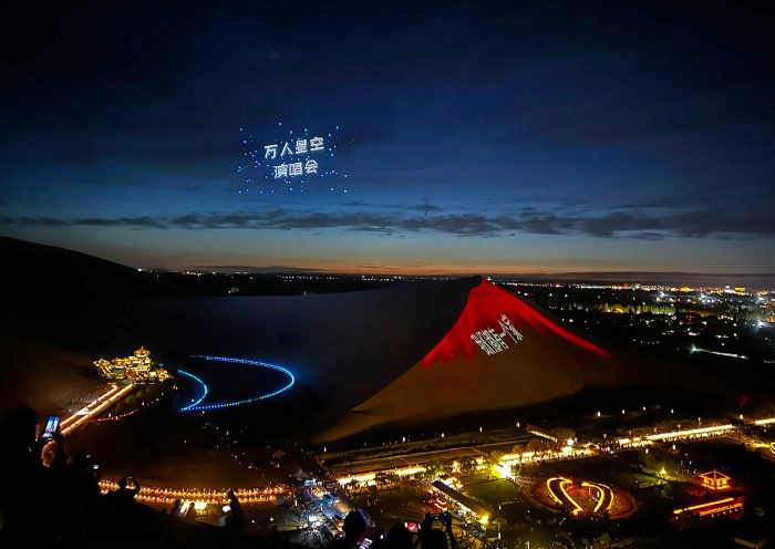 2. “Dunhuang Celebration《敦煌盛典》” (peak season only) is the world’s first large-scale desert live performance, set against the backdrop of the Crescent Lake in the Mingsha Mountain. The unique feature of a 360-degree rotating and movable audience seat enhances the tragic love story of the young painter and the princess, reimagining the former prosperity of the ancient Silk Road and showcasing the unique cultural and folk customs of Dunhuang (including “Iron Flower”).